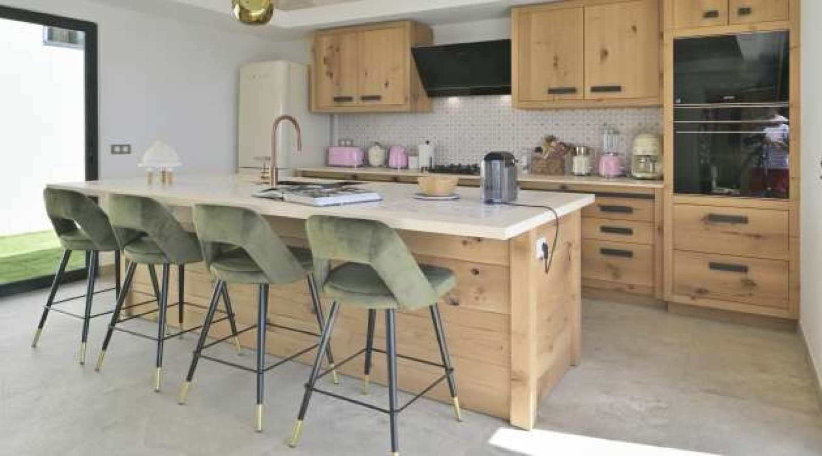 Refrigerator, freezer, dishwasher, wine cellar, oven, microwave, filter coffee maker, Nespresso machine, toaster, blender, kettle, milk frother.